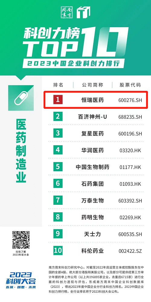 创新再获认可,AG官网医药蝉联“中国企业科创力排行”医药制造业榜首
